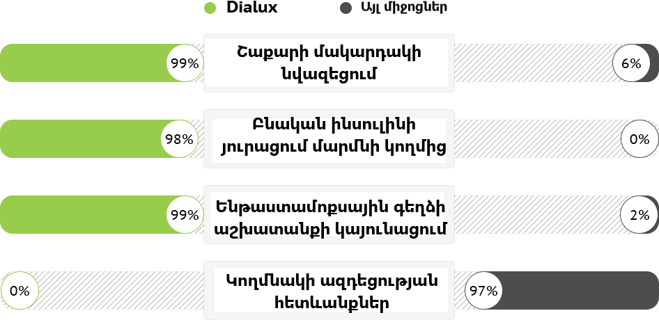 Dialux օգնեց խուսափել լուրջ բարդություններից և անուղղելի հետևանքներից ՝ առանց քիմիայի և առողջության համար վտանգներ : Իմ պրակտիկայում ես օգտագործել եմ Dialux մեկից ավելի : Դեպքերի 98% -ում, եթե օգտագործման հրահանգներին հետևում են, ապա Dialux-ը ազատում է շաքարախտից: